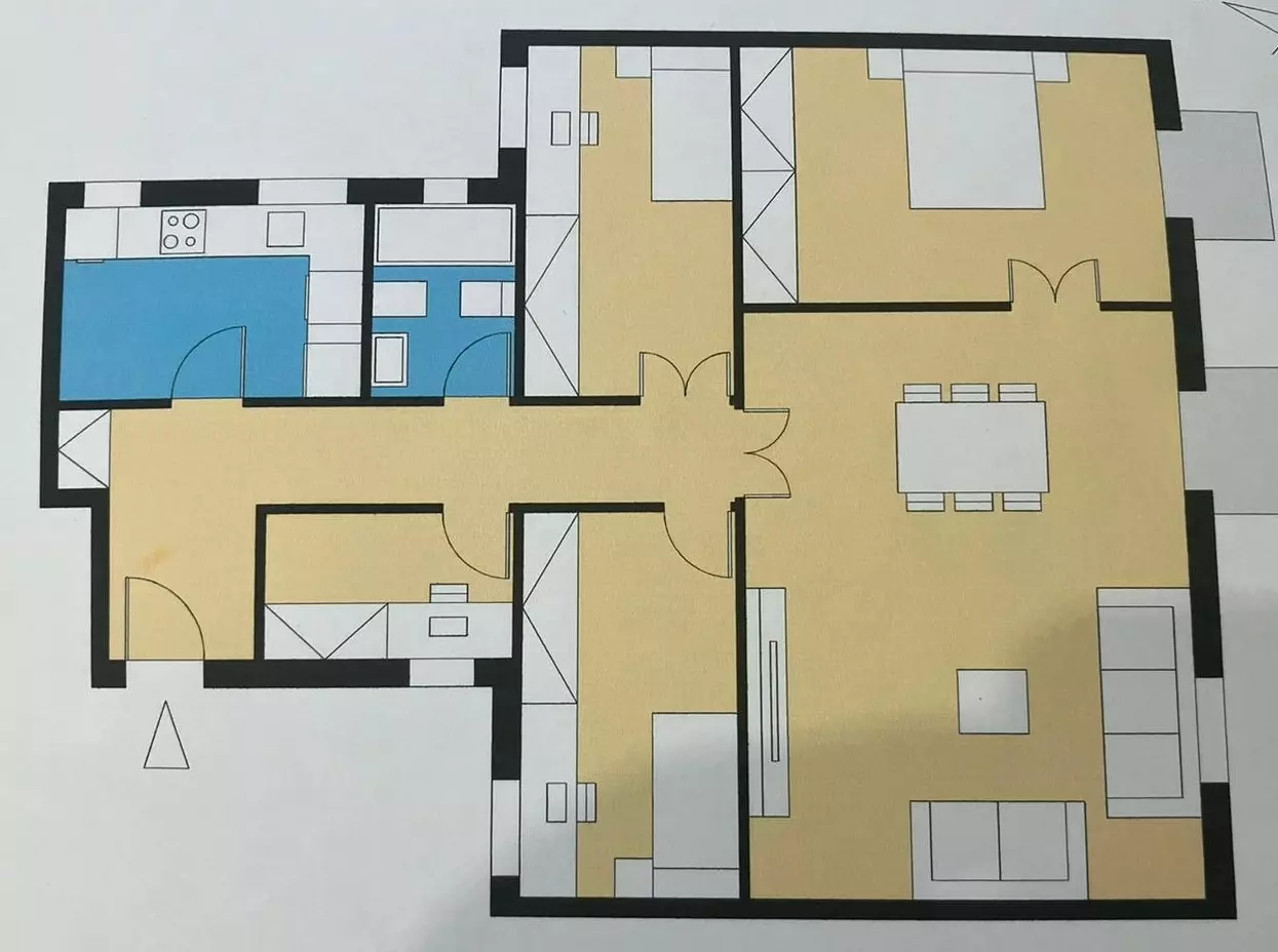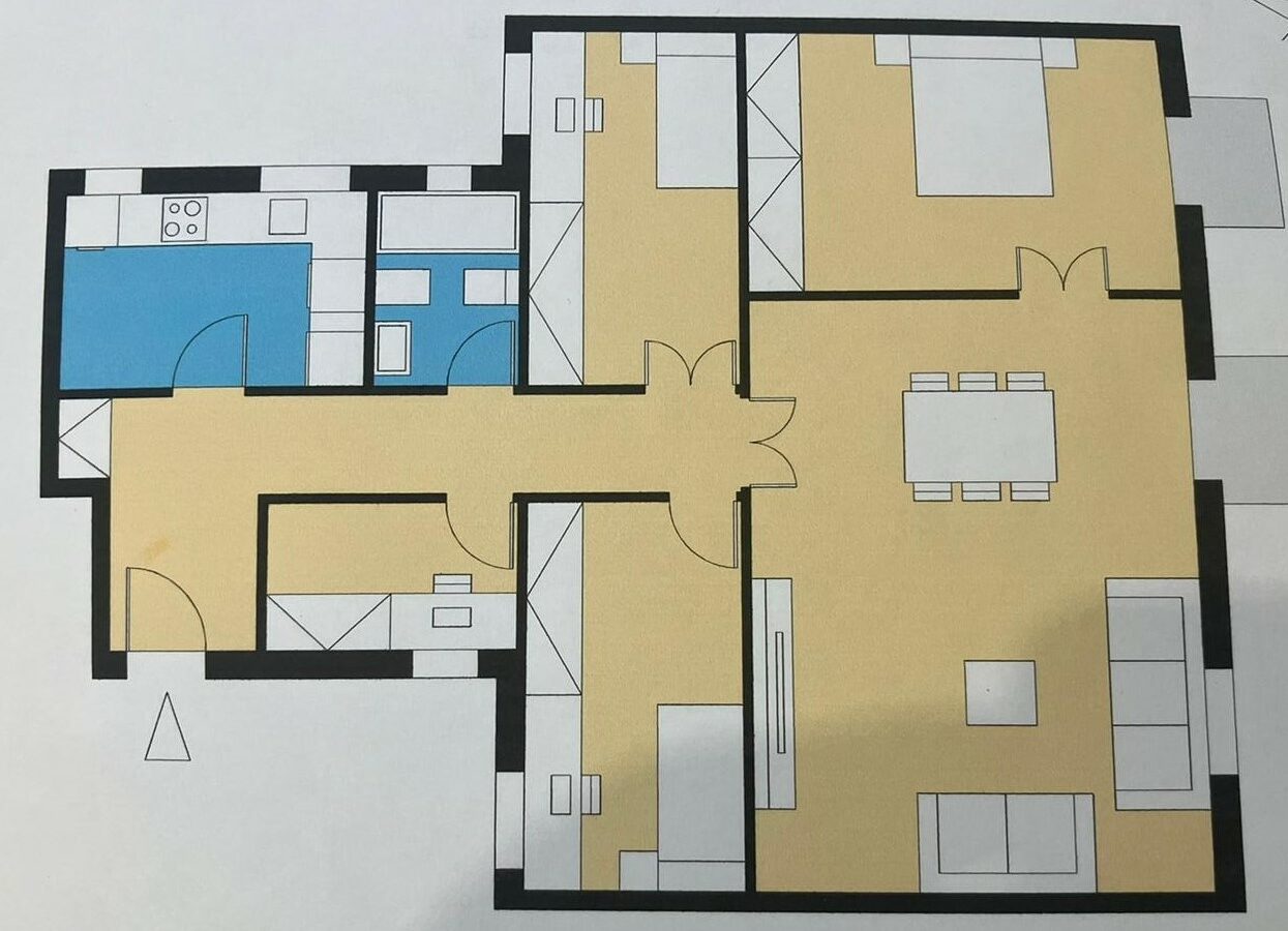 The property features three double bedrooms and one single bedroom, accommodating various living arrangements. There is a bathroom equipped with a bathtub, designed for functionality rather than aesthetics. The kitchen comes fully equipped, ready to handle daily cooking tasks.