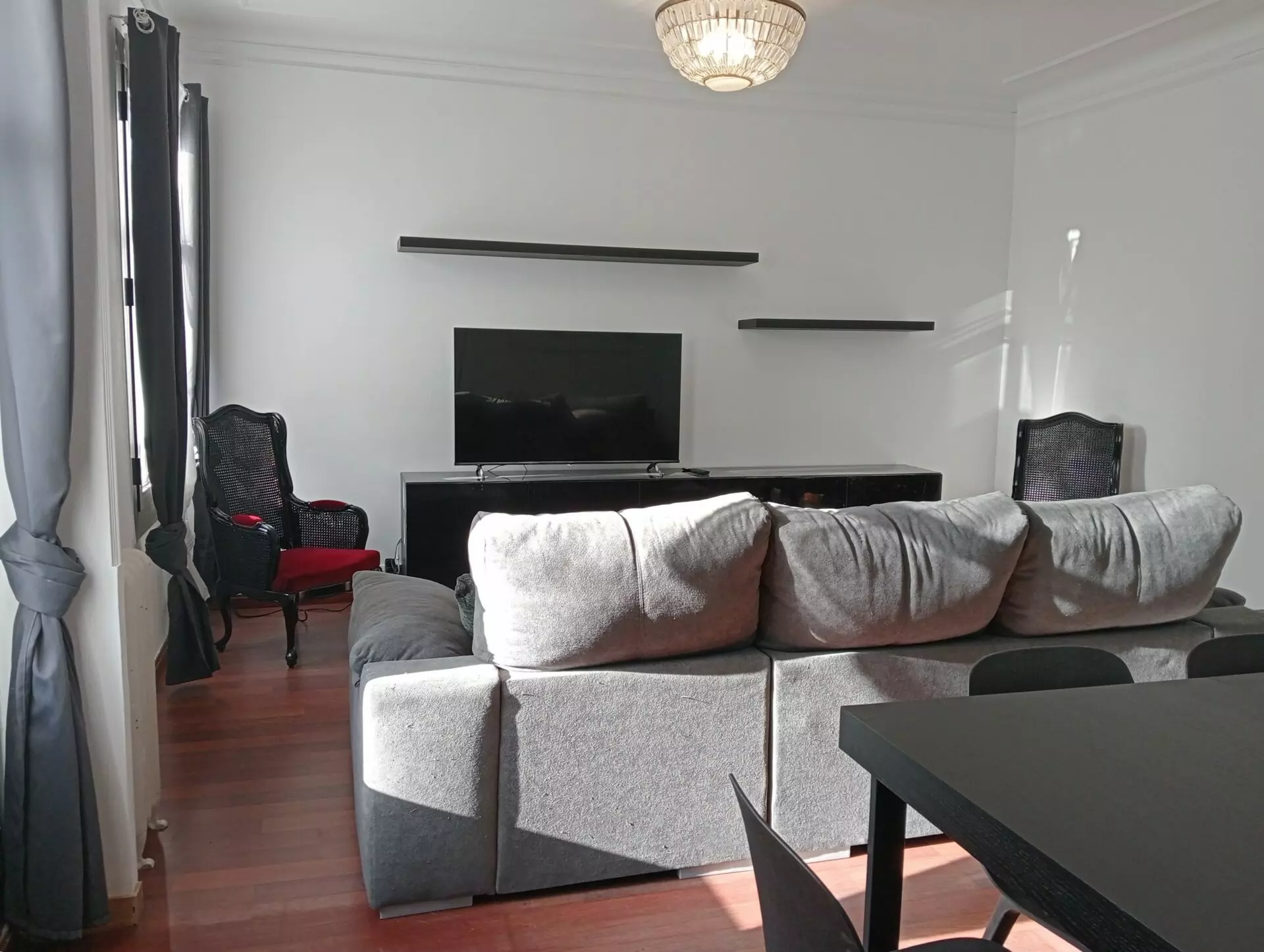 This property is located near Plaza Urquinaona, offering a high floor position that allows for ample natural light. The living area includes an inviting space for relaxation and a dining area. From the balcony, there is access to a small terrace that provides views of the surrounding area.