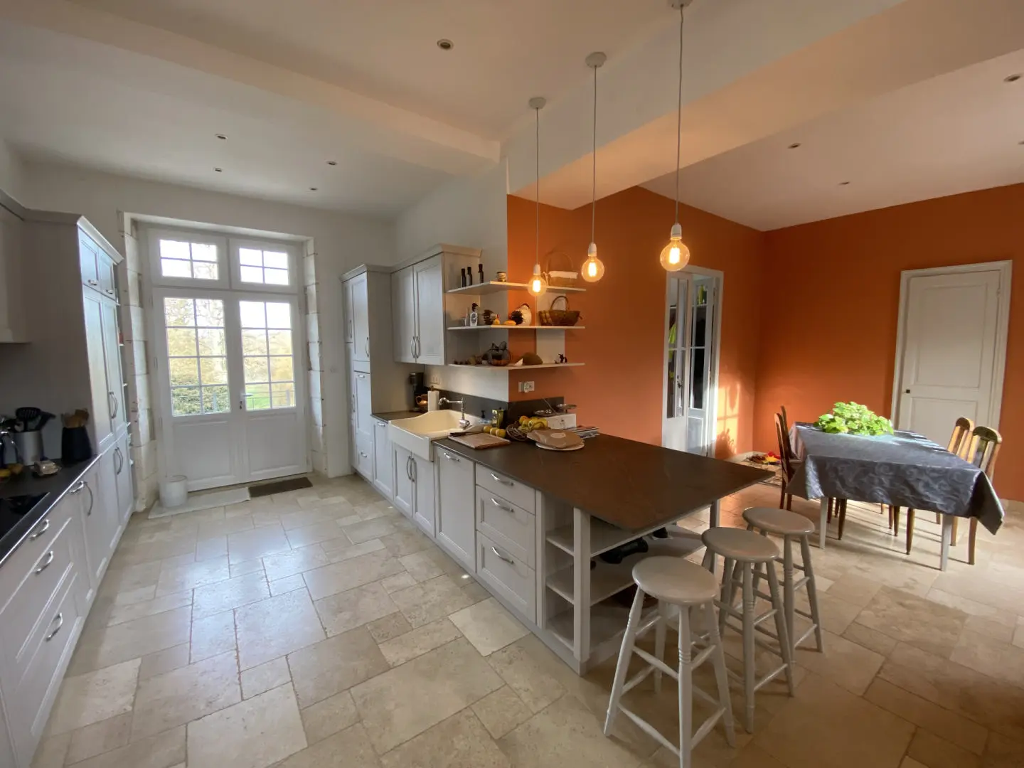 With an authentic character, the flexible main residence offers 568 m² of habitable space, distributed across a main house composed of two distinct wings.