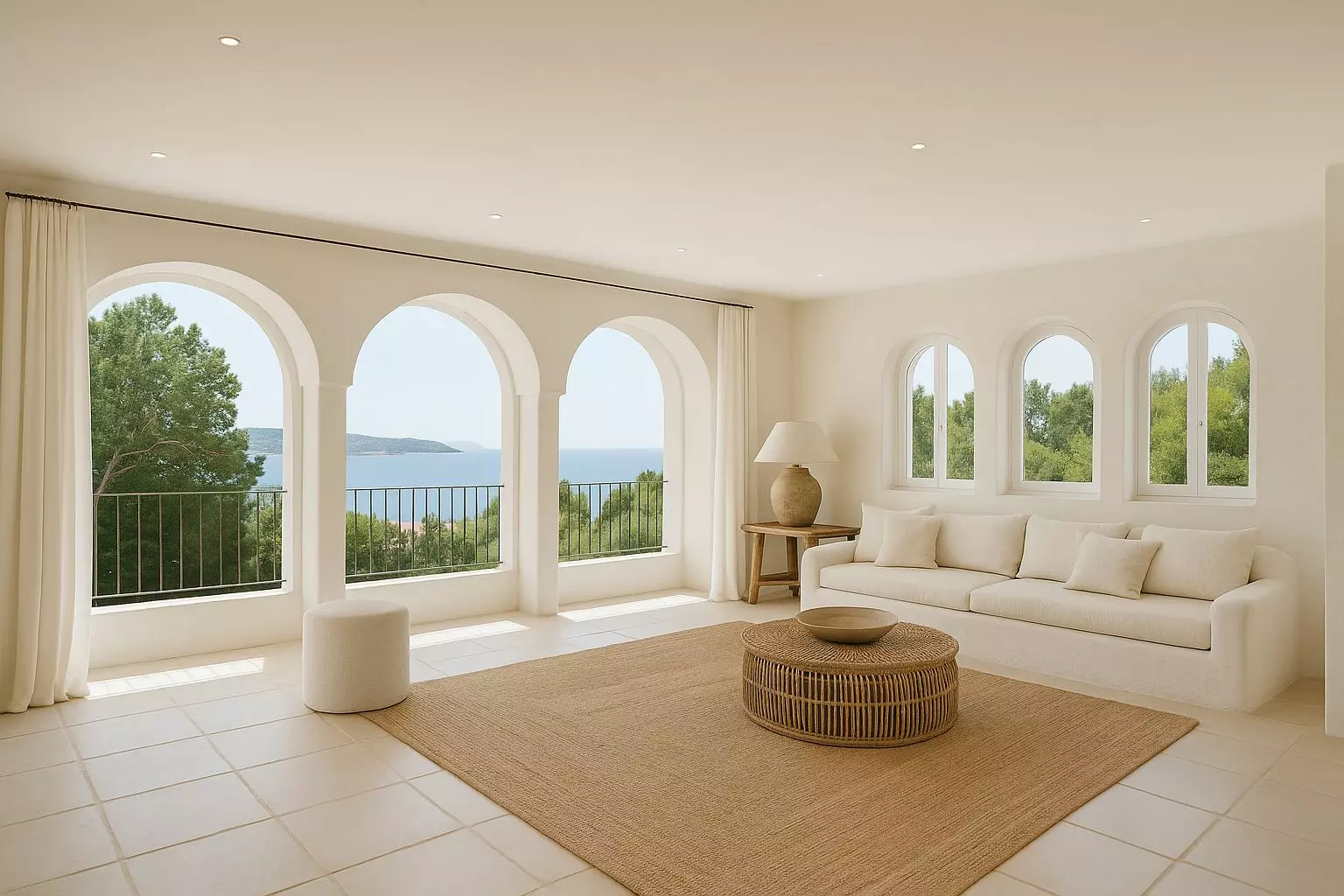 Imagine waking up every morning in a stunning Mediterranean villa perched atop a serene hill with breathtaking panoramic views of the sea, Cabo San Antonio, Javea bay, and the majestic Montgo. This extraordinary home perfectly blends Mediterranean charm with modern comfort, making it a true sanctuary in one of the most sought-after areas of Costa Blanca.