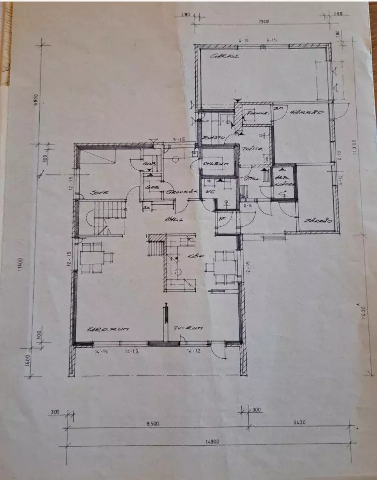 This residential building was constructed in 1977 and features one and a half stories with a total floor area of around 198 m², which includes a garage and technical rooms. The living area is approximately 138 m². It has a wooden frame with a brick façade and a metal roof. The property is connected to the municipal sewage system, and fiber internet is available.