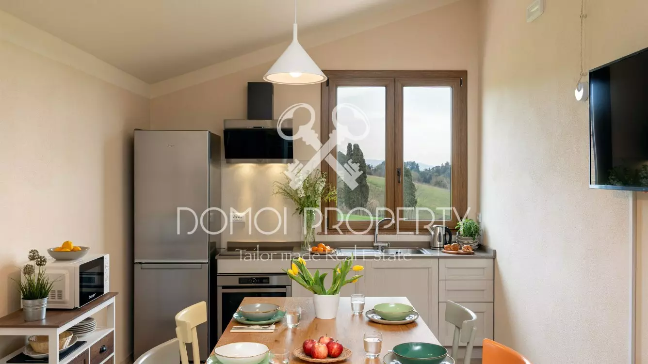 L’agriturismo si compone di 5 grandi appartamenti e 4 camere finemente arredate (32 posti letto), tutti caratterizzati da ambienti luminosi, finiture di pregio e uno stile che coniuga il fascino rustico della tradizione toscana con il comfort moderno.