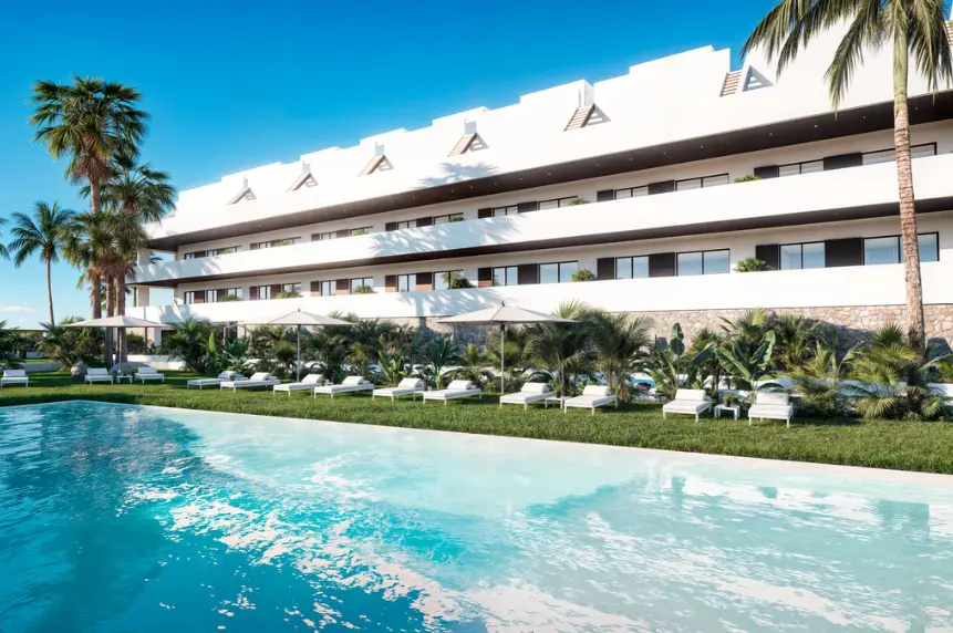 If you’re on the hunt for an apartment with a view of the sea, Finestrat offers some intriguing options. This area, located in the Costa Blanca North region, has a variety of 2-bedroom, 2-bathroom apartments for sale in a new complex. The layout features a living-dining room and an open kitchen, all designed to maximize the use of space.