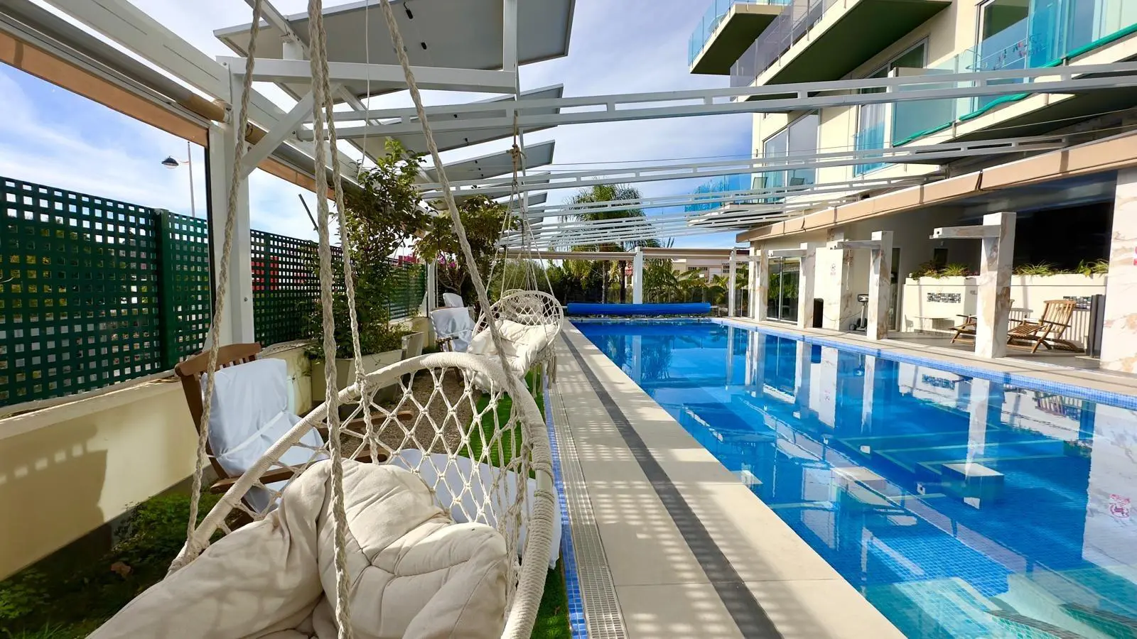The Oasis Building is a modern development known for its extensive communal areas and services. Residents can benefit from a range of facilities that focus on health and recreation. The complex features an outdoor communal swimming pool, complete with a jacuzzi, along with an indoor swimming pool, ensuring year-round enjoyment. Additionally, a sauna area is available, alongside areas equipped with exercise machines for those who prefer to stay active without leaving the comfort of their home.