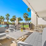 This move-in-ready corner quad house perfectly combines comfort, space and beautiful sea views. Set on a generous plot with landscaped garden and storage room, the property is ideal for both permanent living and relaxing coastal stays.br /br /Inside, you`ll find a bright open-plan living area with lounge, dining space and an open kitchen, complemented by a practical utility room/pantry where the washing machine is located. Thanks to the well-thought-out layout, the home feels spacious and welcoming. The property offers 2 bedrooms and 1 bathroom and is sold fully furnished. For added comfort, air conditioning is installed in the living room as well as both bedrooms.br /br /Outdoor living truly takes center stage. The property features two verandas: one on the ground floor and one on the rooftop, making it possible to enjoy outdoor spaces comfortably even during the cooler months. The highlight is the large solarium with a partially covered rooftop terrace, where you can fully enjoy the sun, peace and panoramic sea views.br /br /The house is part of a well-maintained community with a shared swimming pool, parking facilities and an excellent location: close to the beach, shops, public transport, golf courses, restaurants and all essential amenities. The airport is approximately 50 km away, and the sea is just 2 km from the property.