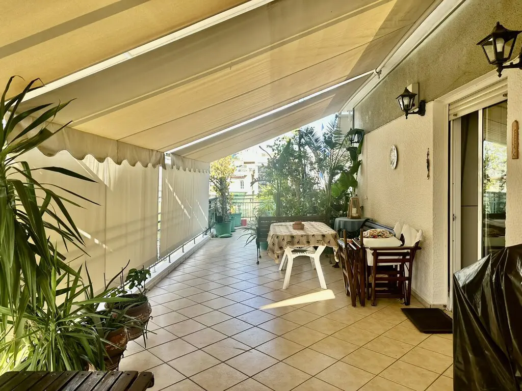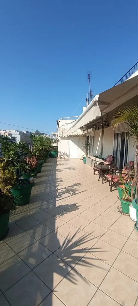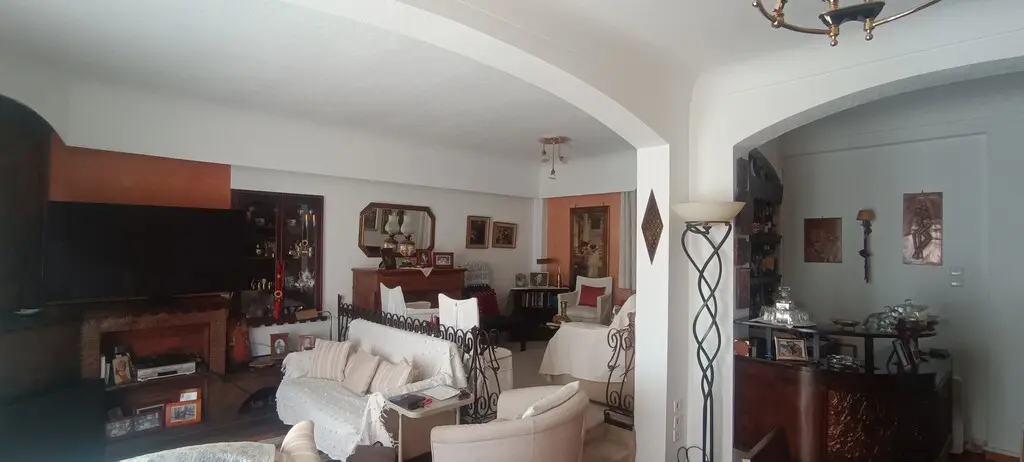 For sale apartment of 115 sq.meters in Athens. The apartment is situated on the 5th floor. It consists of 3 bedrooms, living room, one kitchen, one bathroom, one WC, one storeroom, one dressing room. Flat has front layout. A magnificent view of the city opens up from the windows. There are: solar panels for water heating, a fireplace, air conditioning, awnings, heating. Building has an elevator. There is an alarm system installed.