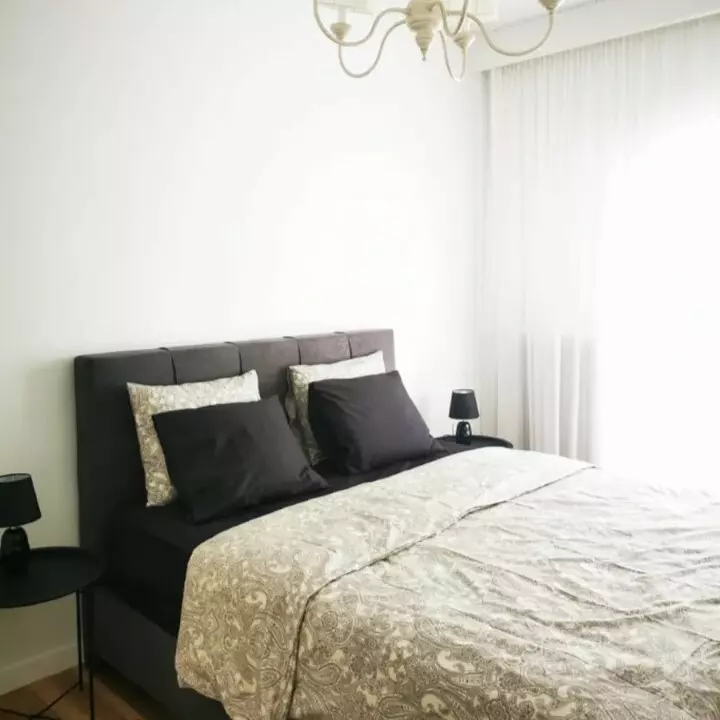 The apartment consists of two bedrooms, which provide adequate space for individuals or small families. The living room features an integrated kitchen, enhancing the usability of the space for daily activities. This front-layout design allows for a flow of natural light into the common areas, contributing to a pleasant living environment.