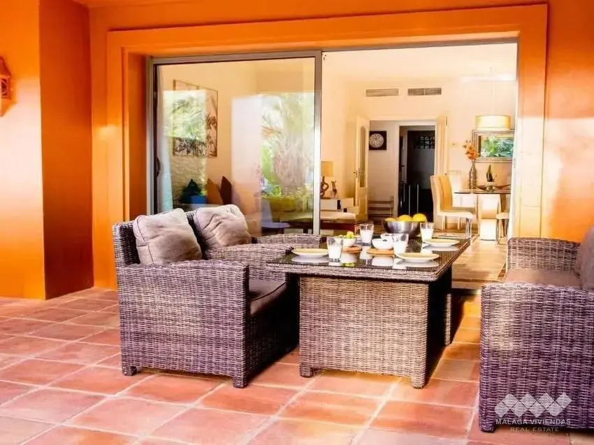 Ubicado en una de las urbanizaciones más exclusivas de Estepona, este elegante apartamento en planta baja ofrece: