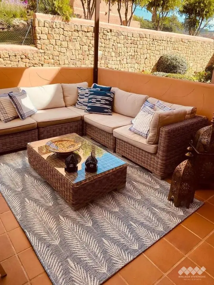 Dispone de 2 habitaciones, 2 baños, armarios empotrados, y una gran terraza con vistas al mar y al campo de golf.