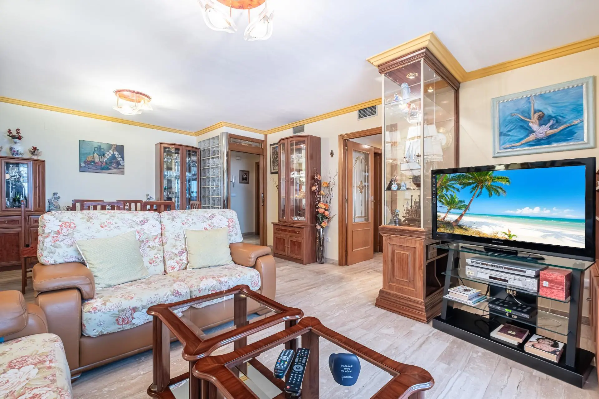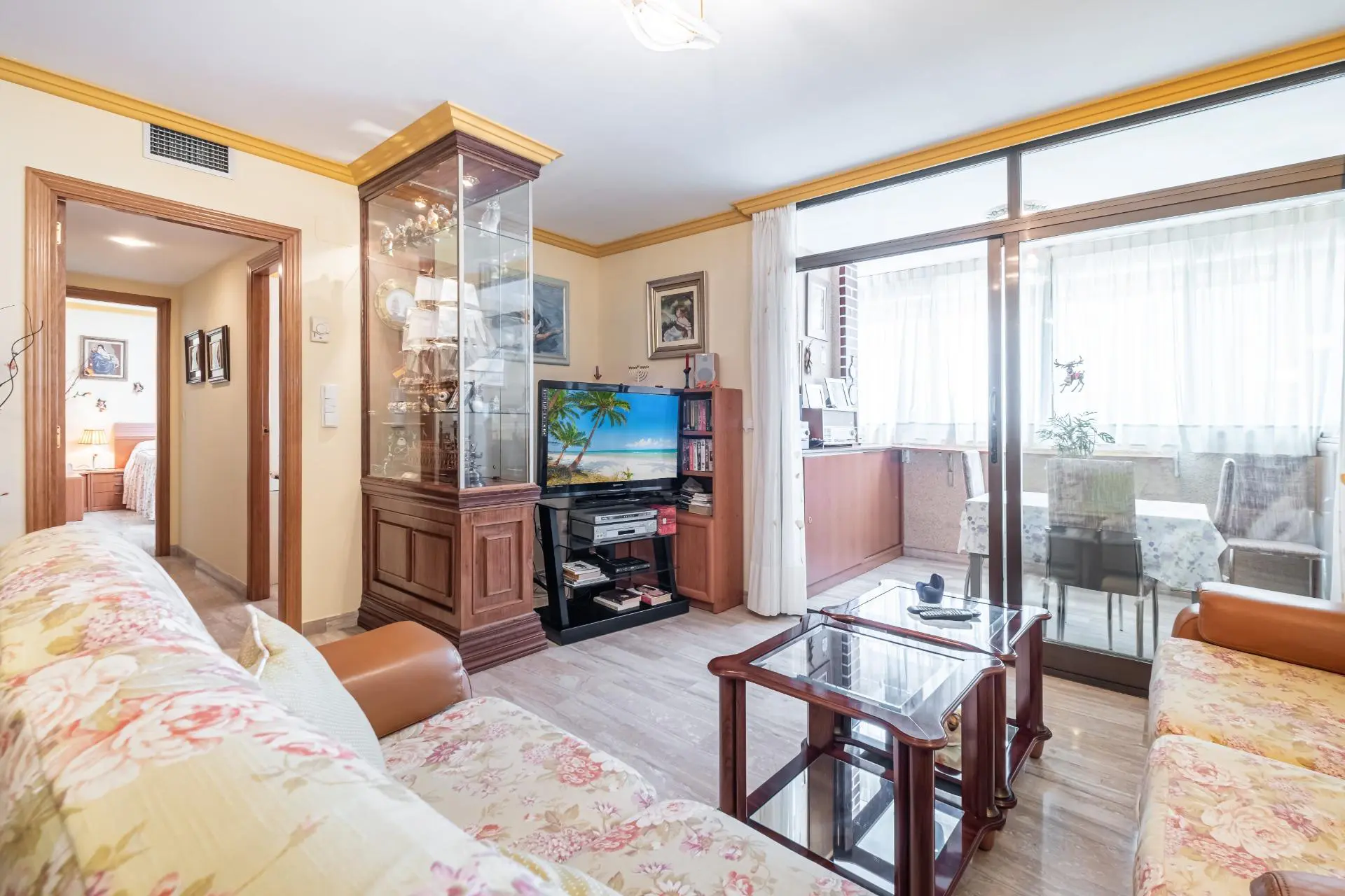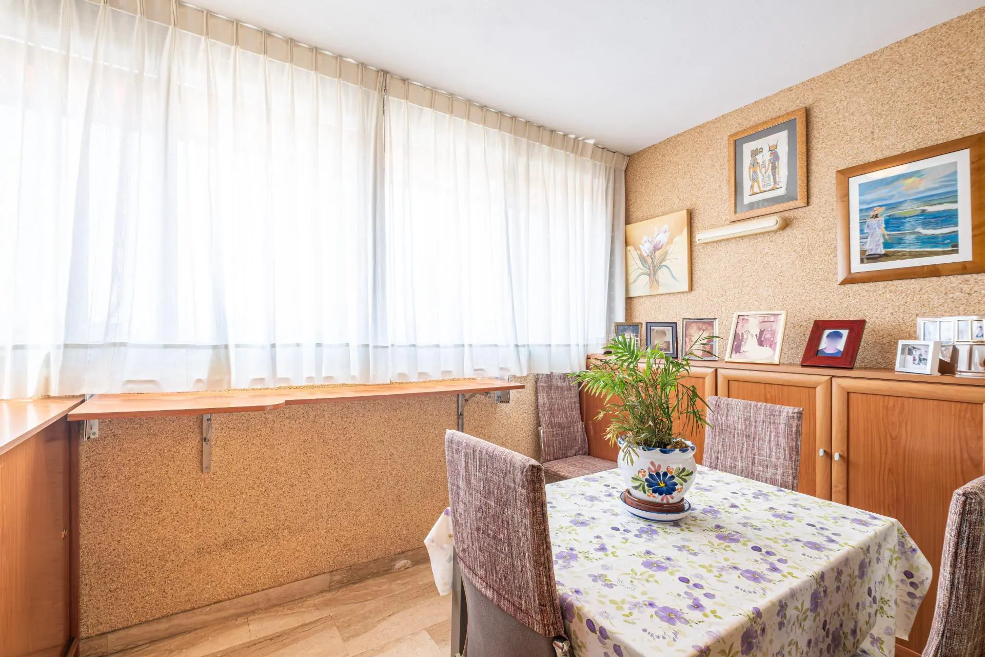 This spacious two-bedroom apartment is ideal for families looking for comfort and tranquility. Located in a very peaceful residential area of Cala de Benidorm, the property features a large and well-lit living-dining room, where one can enjoy time with loved ones. The marble flooring adds a modern touch to the environment. The independent kitchen comes with a handy adjacent laundry room, making daily tasks easier; it also includes two full bathrooms, one of which has a suite-like design.