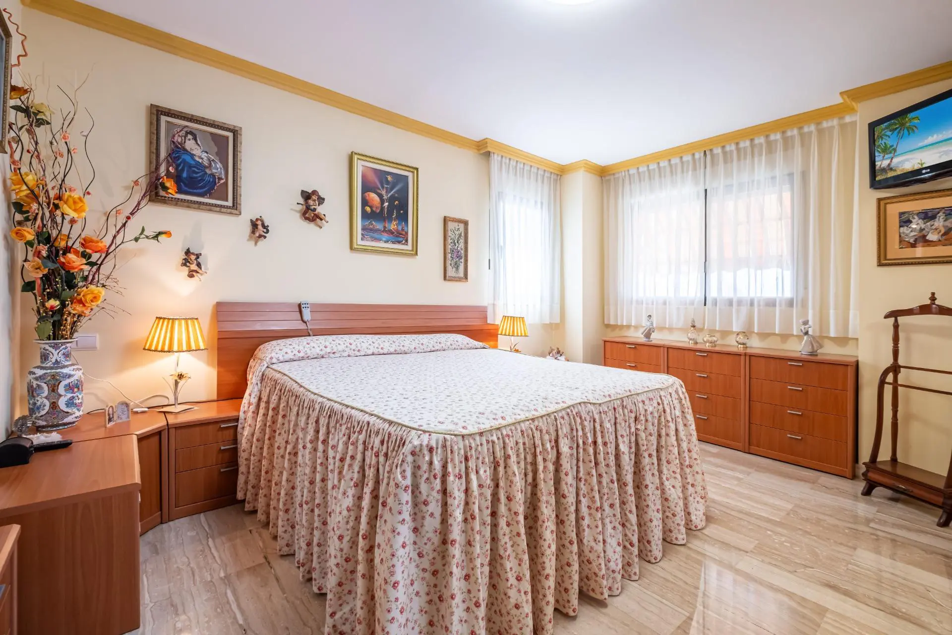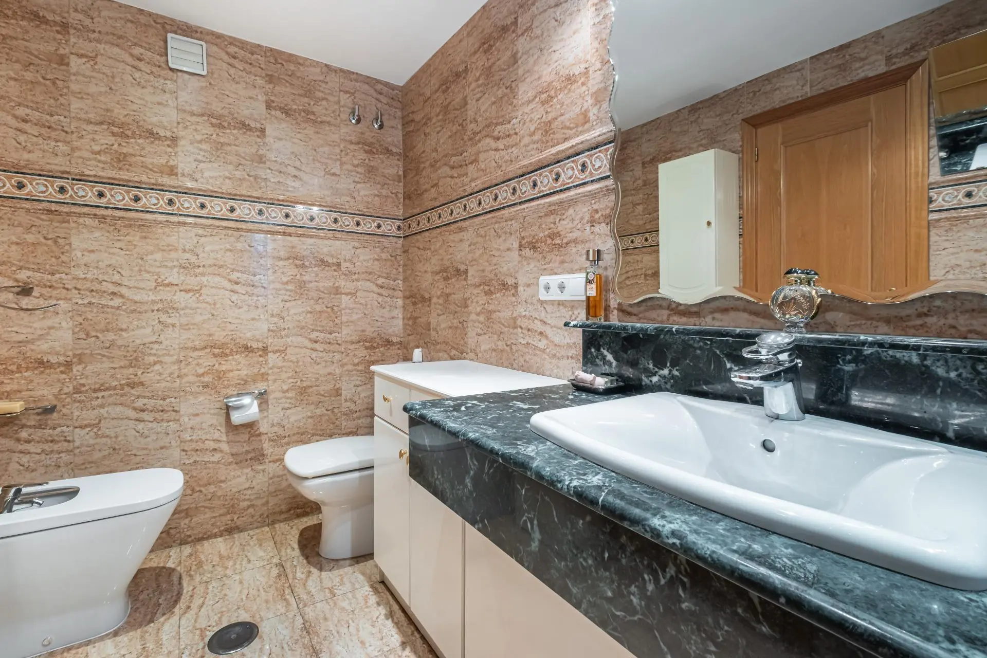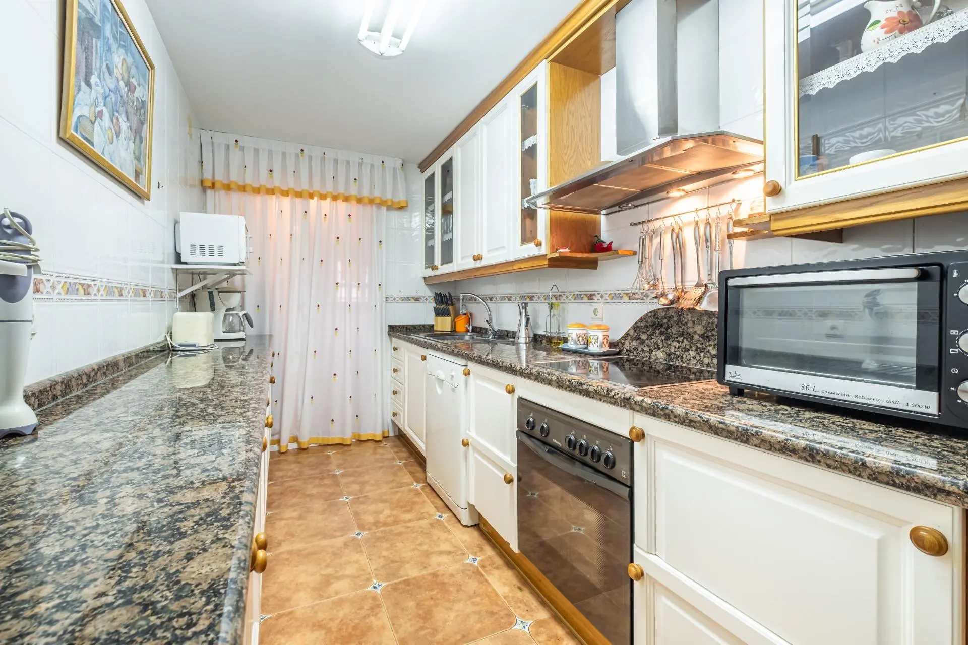 This spacious two-bedroom apartment is ideal for families looking for comfort and tranquility. Located in a very peaceful residential area of Cala de Benidorm, the property features a large and well-lit living-dining room, where one can enjoy time with loved ones. The marble flooring adds a modern touch to the environment. The independent kitchen comes with a handy adjacent laundry room, making daily tasks easier; it also includes two full bathrooms, one of which has a suite-like design.