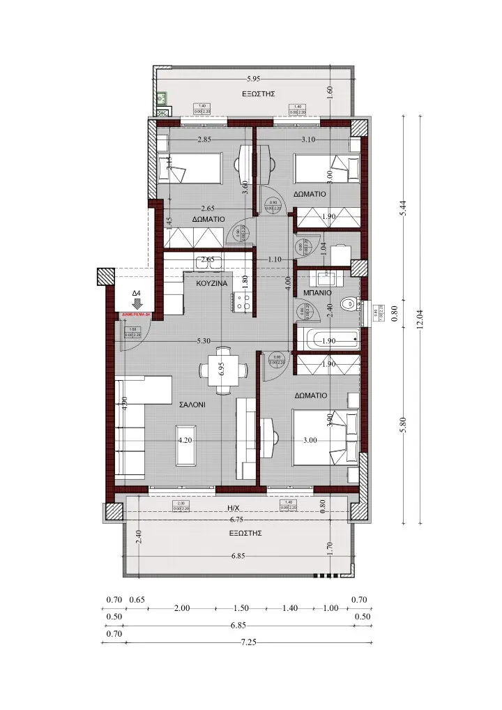 Flat 96 M² With Two Bedrooms In Thessaloniki