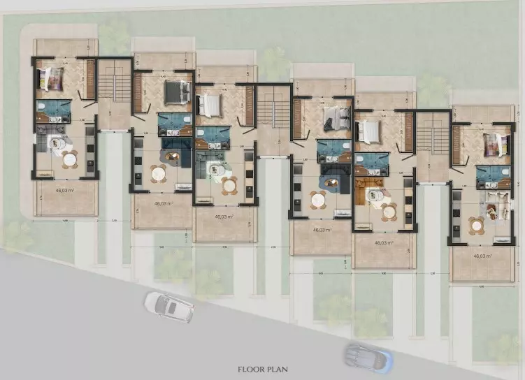 The apartment benefits from a front layout, ensuring ample natural light and direct access to the front area. This design enhances the living experience in the apartment while providing ease of access.