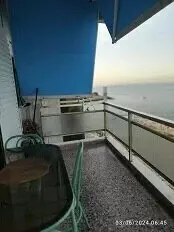The windows offer a view of the sea, enhancing the living experience. The apartment is equipped with essential features such as air conditioning, awnings for shade, and a heating system to maintain a comfortable environment throughout the year.