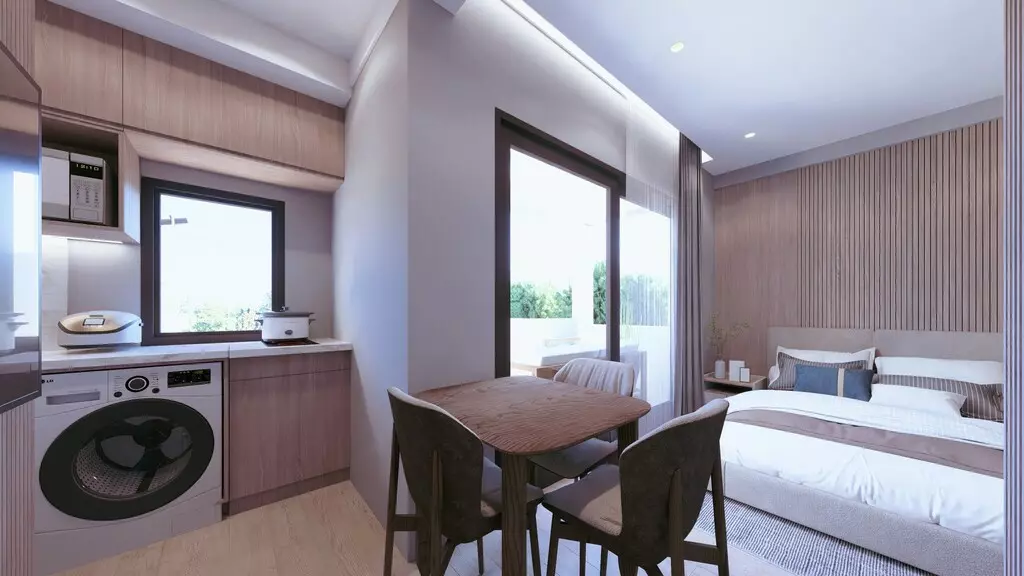 This apartment comes equipped with both air conditioning and heating, which can help maintain a comfortable temperature year-round. Another key point is that the current owners plan to leave the furniture with the sale, potentially easing your transition into the space. This could save you the time and effort of furnishing a new place.