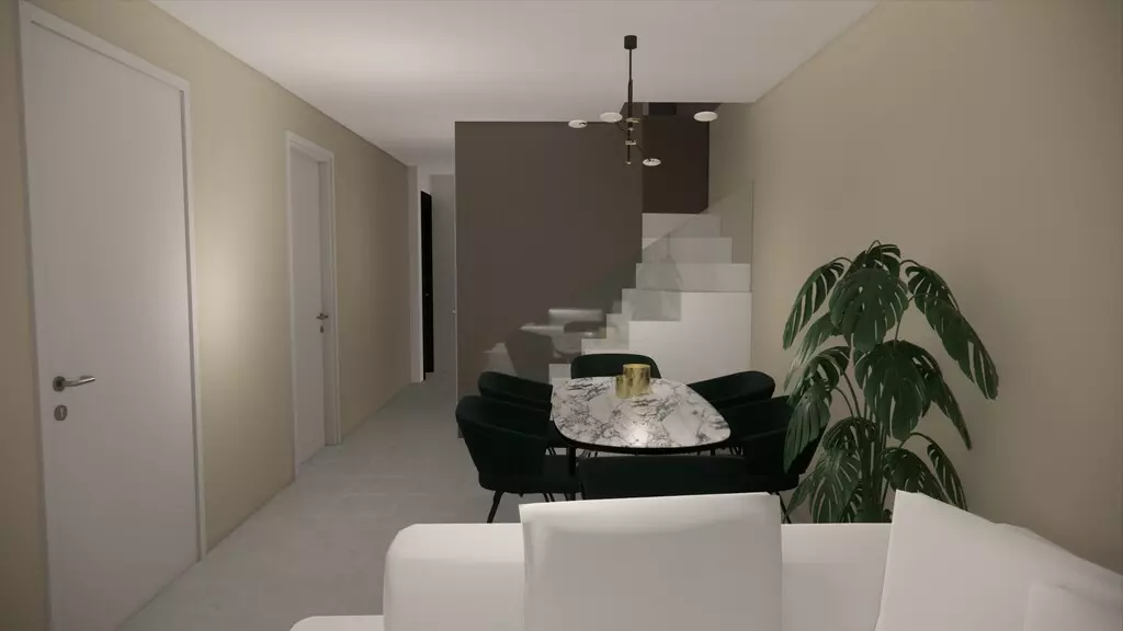The apartment comprises two bedrooms, a living room that merges with the kitchen, and one shower WC. This layout provides a functional living space. In addition to the essential features, the flat includes a fireplace, air conditioning, and awnings to enhance comfort during various seasons. The heating system is also installed, ensuring a regularly maintained temperature throughout the year.