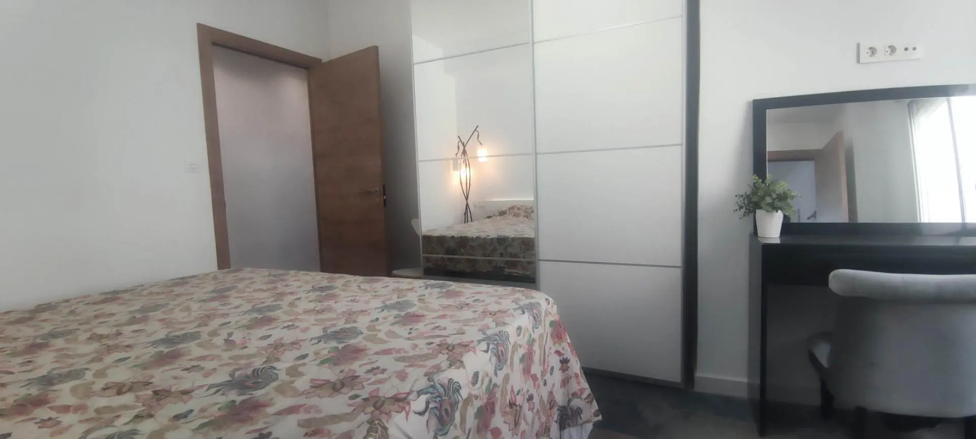 The unit consists of 2 double bedrooms and 2 bathrooms. It has been renovated, featuring a fully equipped kitchen. The interior carpentry is made of beech wood, and the property’s orientation is towards the east. The flooring is tiled with ceramic (gres), and the exterior carpentry is aluminum with climalit glazing.