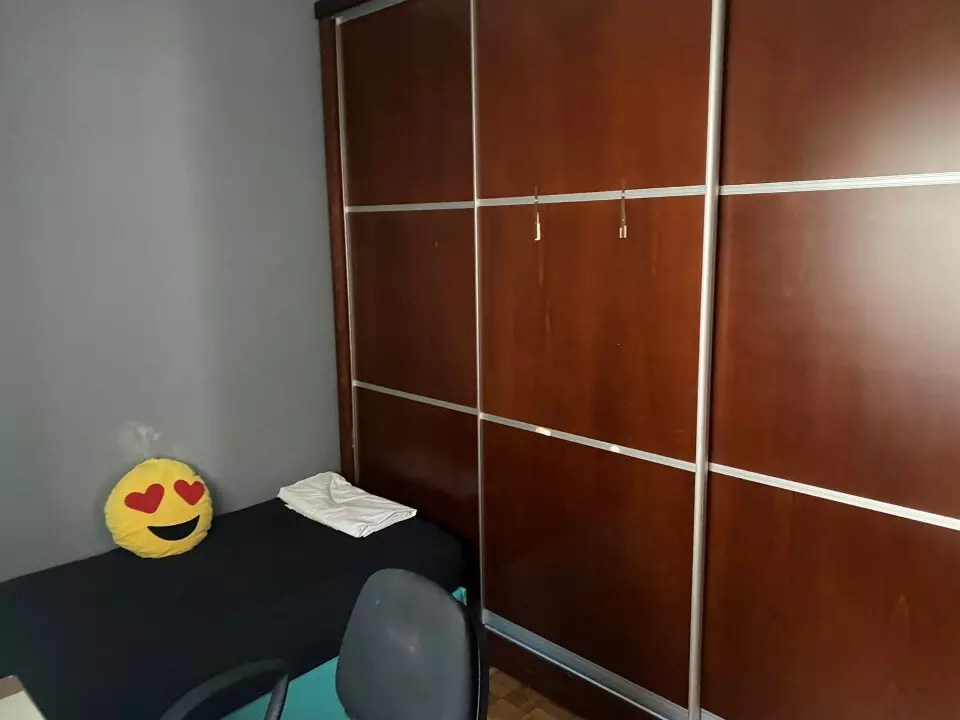 The apartment includes three bedrooms, a living room with an integrated kitchen area, and one bathroom. It comes equipped with essential amenities like solar panels for water heating, air conditioning, and central heating to keep the environment comfortable year-round.