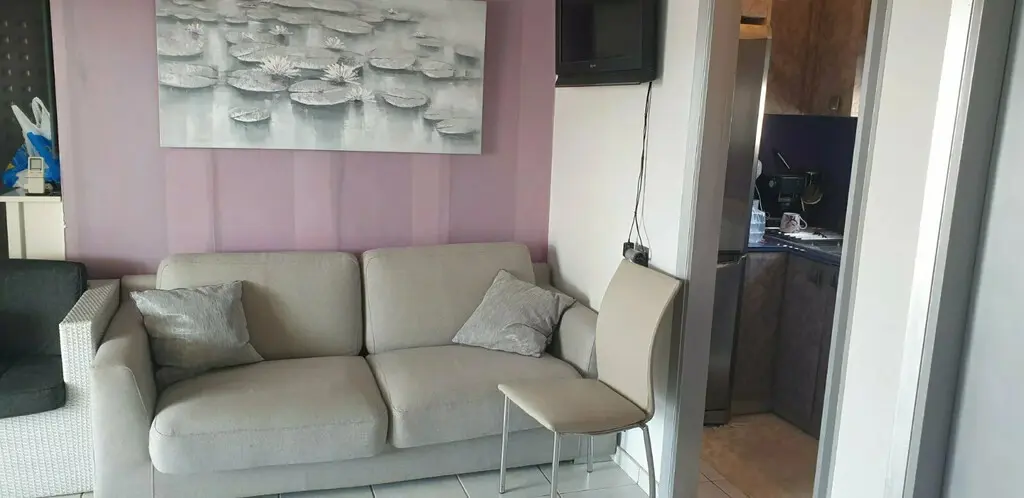 The apartment features one bedroom, a living room, a kitchen, and a shower WC. This layout is ideal for individuals or couples seeking a manageable living space. The inclusion of essential amenities such as solar panels for water heating ensures energy efficiency. Additionally, air conditioning and heating systems are installed, enhancing overall comfort throughout different seasons.