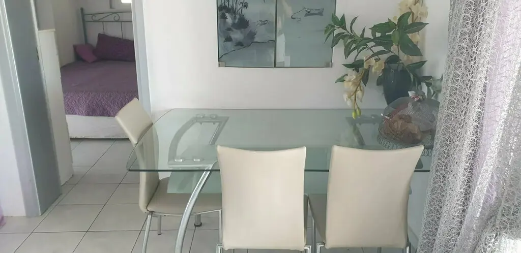 This apartment comes equipped with awnings, providing shade and privacy. The sale includes the current furniture, allowing for a seamless transition when moving in. The building itself is accessible, equipped with an elevator to conveniently reach the upper floors.