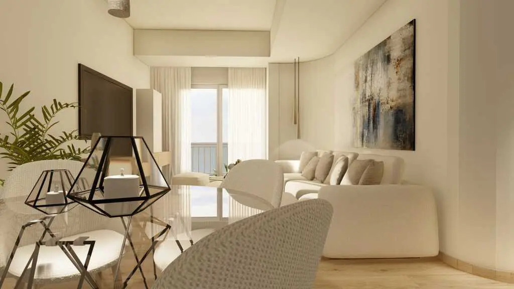 This apartment features a front layout, offering views of the sea from the windows. Enjoy the benefits of modern living with amenities such as solar panels for water heating, air conditioning, and heating throughout the unit. The building itself includes an elevator for easy access to the upper floors, enhancing the overall accessibility of the property.