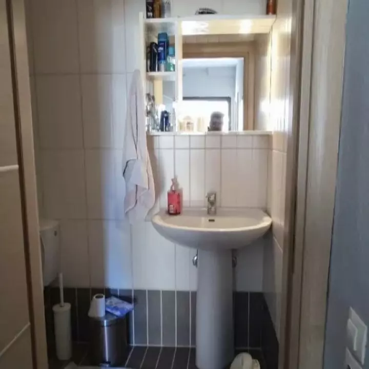 This apartment features one bedroom, a living room that includes a kitchen area, and a shower WC. Additionally, there’s a storeroom for extra space, which can be handy for storage needs. The front layout of the flat allows for a view of the city and the forest from the windows, providing a refreshing outlook.