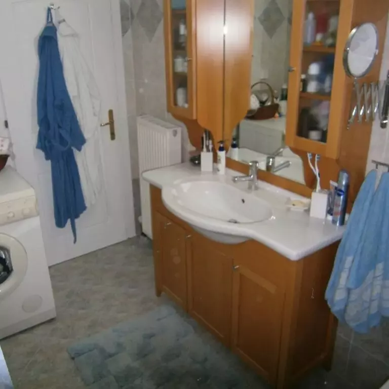 This apartment features a total area of 97 square meters and is located on the third floor of a residential building in the suburbs of Thessaloniki. With its double-frontage layout, the flat offers a practical arrangement for daily living.