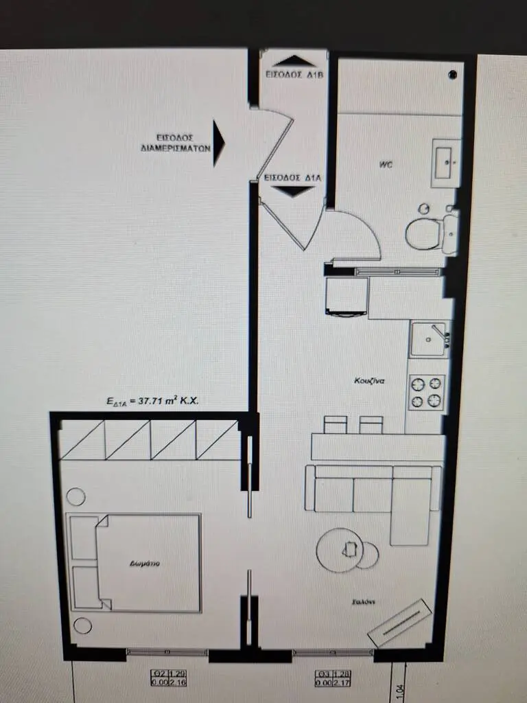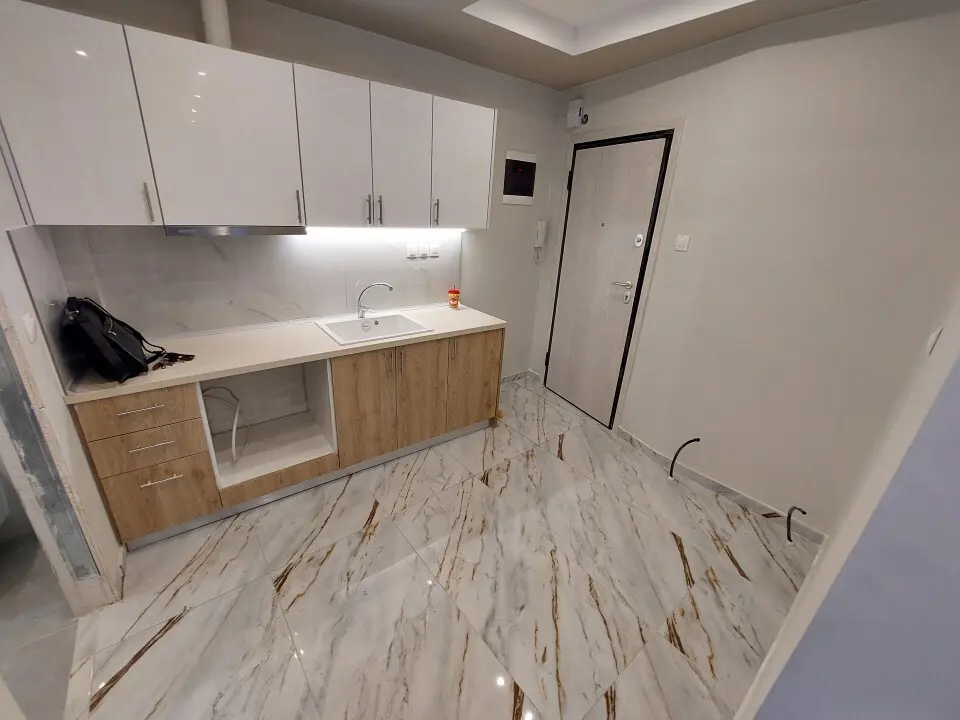 This apartment comprises one bedroom and a living room combined with a kitchen space. There is also a shower WC, making it functional for everyday living. The flat features a front layout, allowing for a view of the city from the windows, which can be appealing for those who enjoy urban scenery.