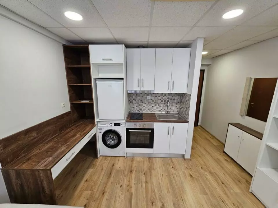 The apartment features a living room combined with a kitchen area, offering an open layout that maximizes the use of space. Additionally, there is one shower WC, providing essential amenities for daily life. The interior layout focuses on functionality, making it an efficient choice for urban living.