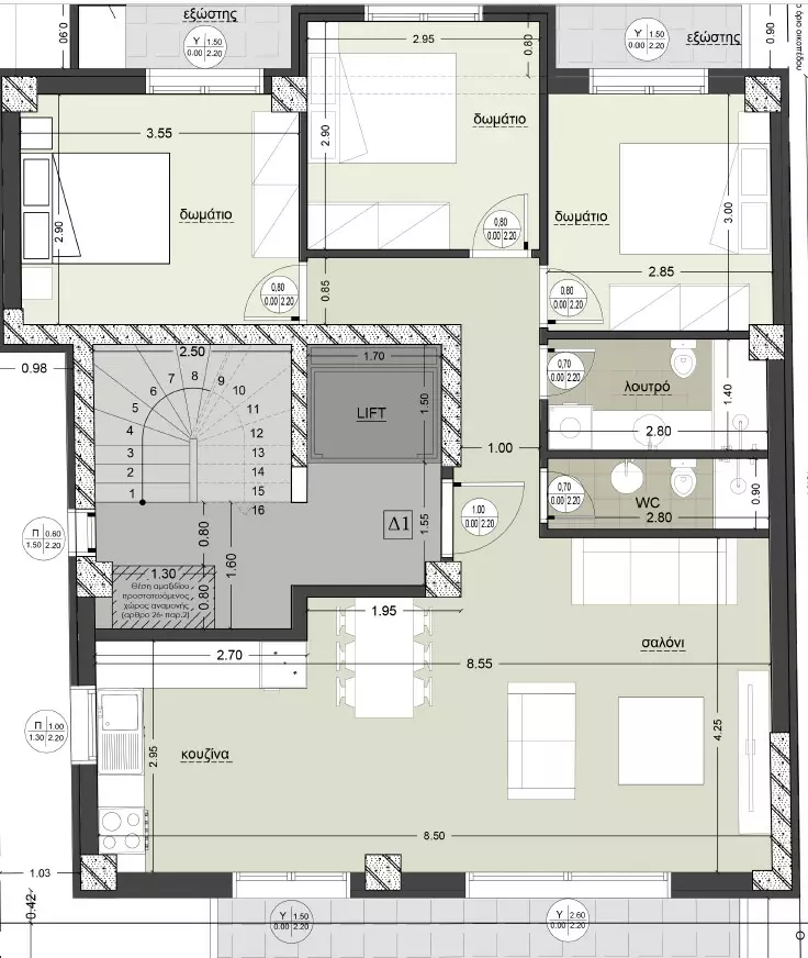 Located in Thessaloniki, this under-construction apartment spans 120 square meters and offers a four-floor position in the building. This property is designed to accommodate various living arrangements, featuring three bedrooms, a living room that integrates with the kitchen, a shower WC, and a separate WC.