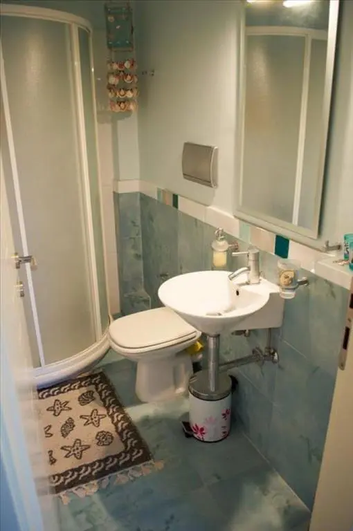 The apartment features four bedrooms, a living room combined with a kitchen, a bathroom, and an additional WC. This layout is functional and designed for everyday living. The front layout of the property provides a splendid view of the sea directly from the windows, which can enhance the overall living experience.