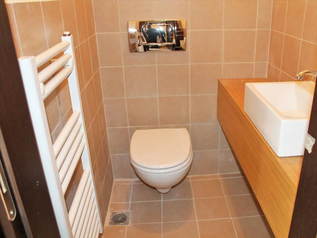 The interior layout of the apartment is designed to provide functional living space. Notable features include a fireplace that can be used for heating during cooler months, as well as a central heating system in place. The owners are including the existing furniture in the sale, making it easier for the new owners to settle in without the need for immediate additional investments in furnishing.