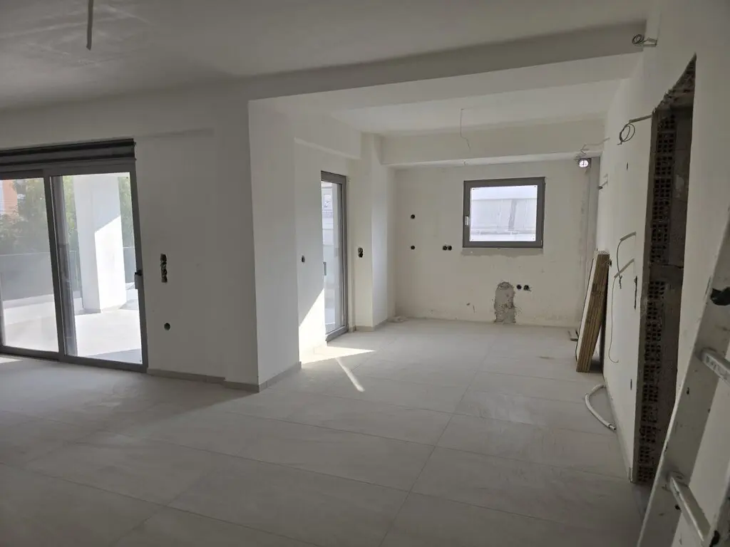 This under-construction apartment in Athens offers a total area of 109 square meters and is located on the 1st floor. It features three bedrooms, making it suitable for families or individuals needing extra space. The layout of the apartment includes a living room with an integrated kitchen, a shower WC, and an additional WC.