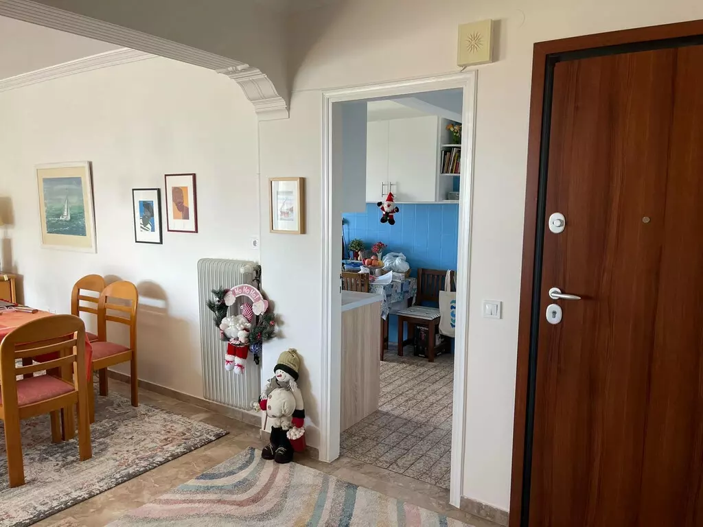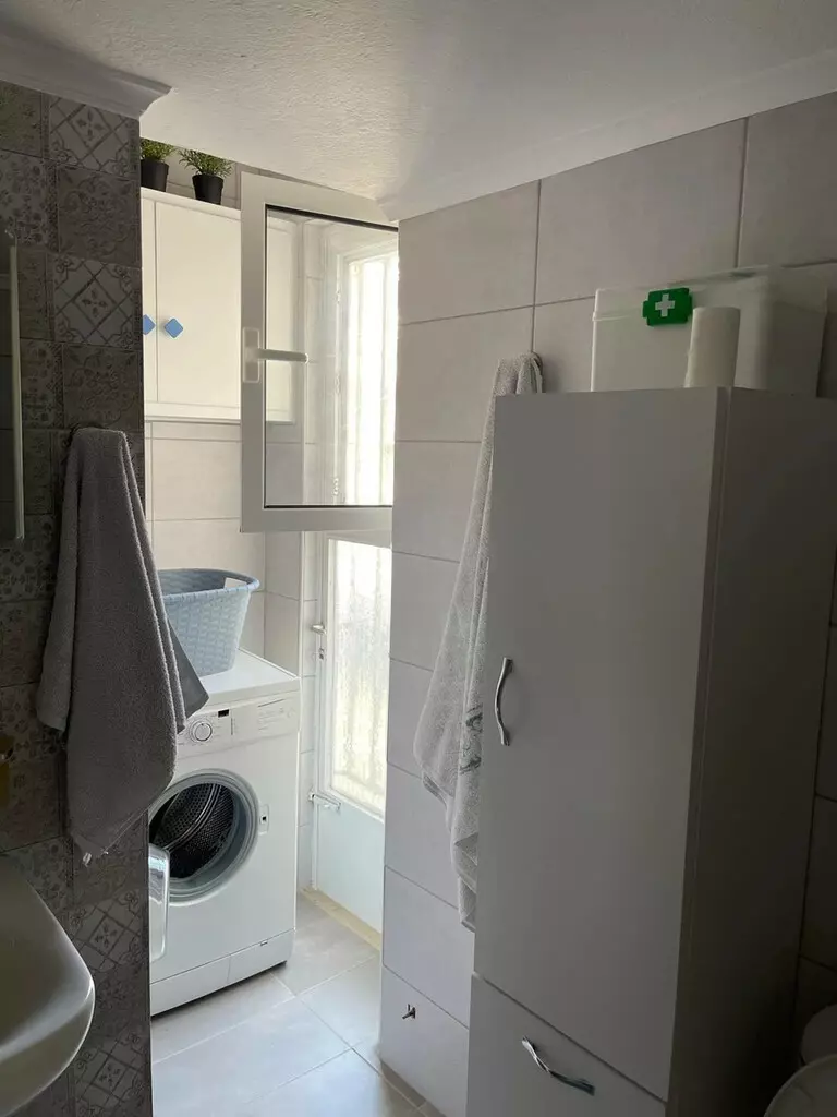 This apartment offers a view of the sea from its windows, enhancing the overall atmosphere. It is equipped with solar panels for water heating, contributing to energy efficiency. Additionally, air conditioning ensures a suitable indoor climate during warmer months, while awnings provide shade and protection from direct sunlight. The heating system is also in place, ensuring comfort during cooler periods.