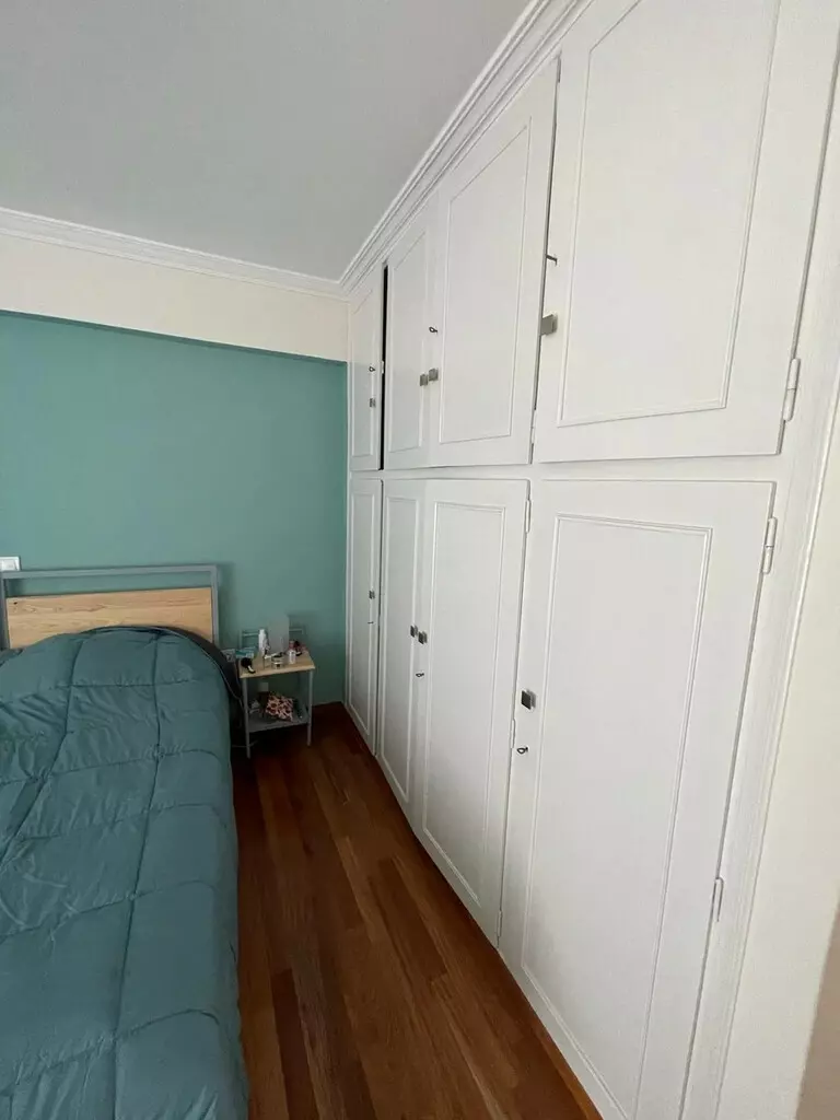 The apartment features three bedrooms, providing ample room for residents. It includes a living room, a kitchen, and a shower WC, making it suitable for various living arrangements. The flat’s double-frontage layout allows for natural light and ventilation throughout the space.