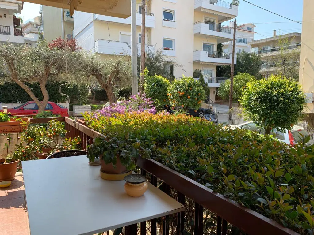 Discover a 110 square meter apartment available for sale in Athens, situated on the ground floor. This property features a layout that includes two bedrooms, a living room combined with a kitchen, an additional kitchen, two bathrooms, and an office space. The arrangement allows for functional use of space, catering to various needs.