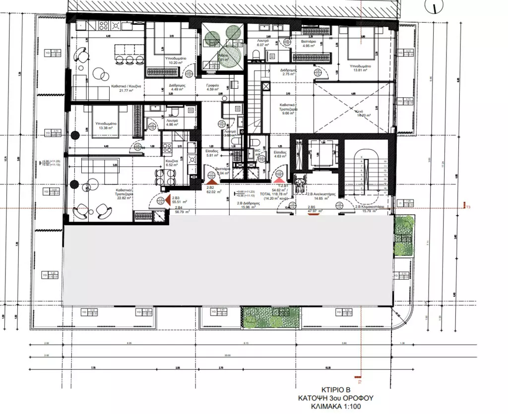 Introducing a 73 square meter apartment for sale, currently under construction, located in Thessaloniki. This apartment is positioned on the third floor, featuring a front layout that allows for ample natural light.