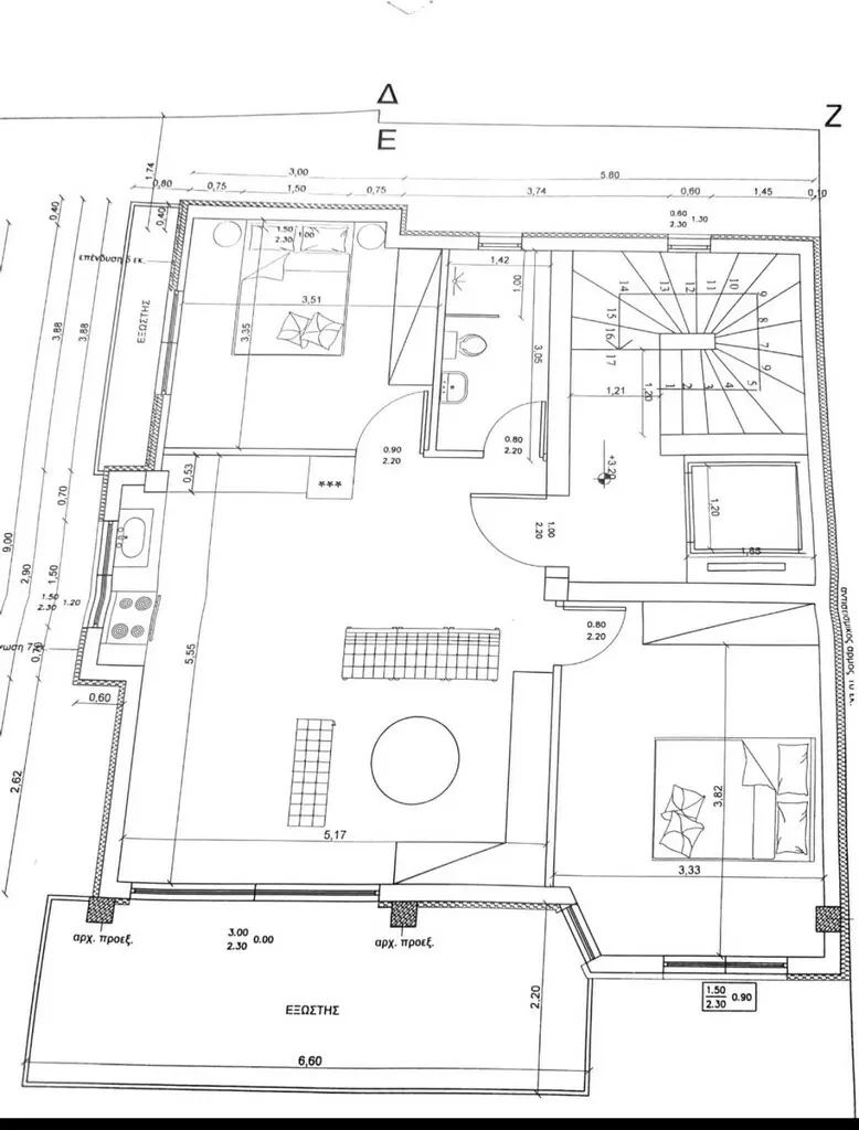 Located in Thessaloniki, this apartment spans 97 square meters. Positioned on the third floor, it includes two bedrooms and a living room that is combined with the kitchen. The layout features a double-frontage design, allowing for a view of the city from the windows.