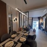 The apartment includes three bedrooms, providing ample space for residents. The combined living room and kitchen area allows for efficient use of the space, making it suitable for both entertaining and everyday living. Additionally, the unit features two shower WCs, ensuring convenience for multiple occupants.