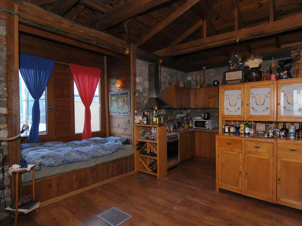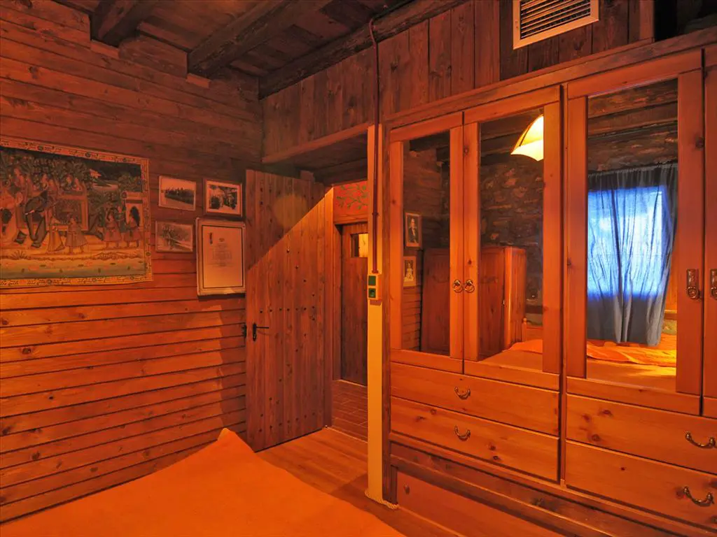 The ground floor is designed for daily living and includes a combined living room and kitchen area. This space is intended for both relaxation and meal preparation. Also on this level, you’ll find a shower room with a toilet, a storeroom for keeping things organized, and a sauna, which adds a feature for personal wellness.