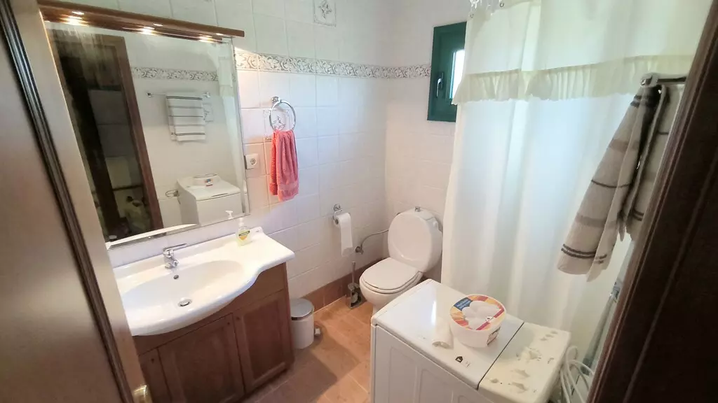 On the ground floor, you’ll find one bedroom, a living room complete with kitchen facilities, another shower and WC, as well as an additional storeroom. This layout maximizes the use of space while offering essential amenities.