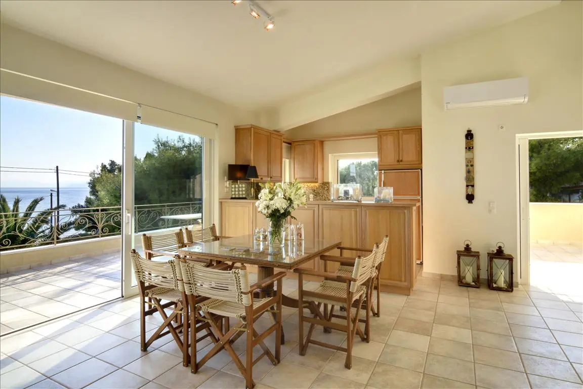The property offers a sea view from its windows. It is equipped with a fireplace, air conditioning, and a heating system. The current owners intend to include the furniture as part of the sale. An alarm system is installed for security.