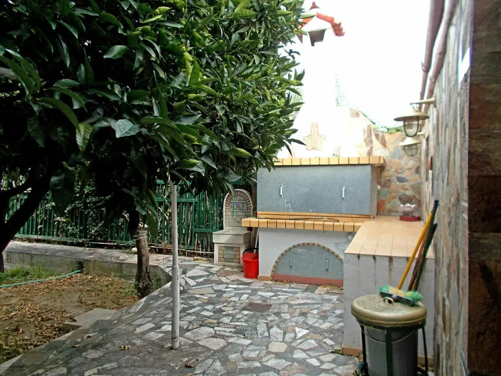 The property is equipped with several features designed for comfort and convenience. For water heating, there are solar panels installed. A fireplace is present in the living area. For climate control, the house has both air conditioning and a heating system. Outdoor facilities include a barbecue area. Additionally, a parking space is included with the property.