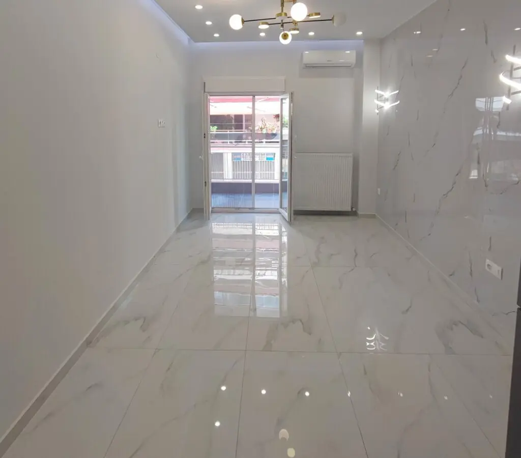 This apartment, located in Thessaloniki, is now available for sale. It has a total area of 55 square meters and is situated on the first floor of the building. The layout includes two bedrooms, a living room that incorporates the kitchen area, and a bathroom with a shower and toilet.