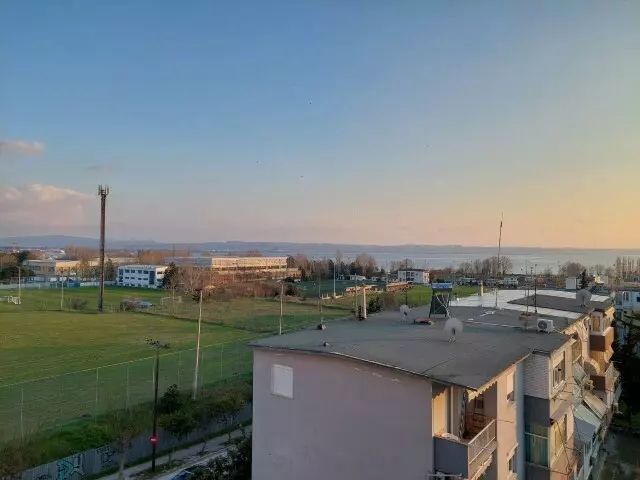 The flat boasts a front layout that maximizes natural light. From the windows, residents can enjoy a view that includes both the sea and the mountains, offering a unique perspective of the landscape. The apartment is equipped with air conditioning and heating, which adds convenience throughout the seasons. Awnings are also in place to provide shade when needed.