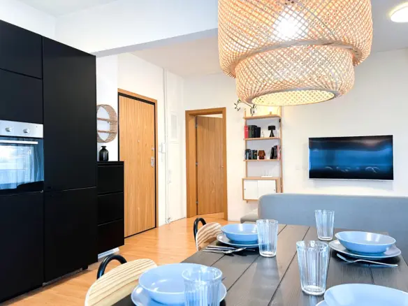 The apartment is situated within a building that features an elevator. This amenity is a practical addition, particularly for residents who may prefer or require easier access to their living space, irrespective of floor level. The elevator system contributes to the overall convenience of the building for all occupants.