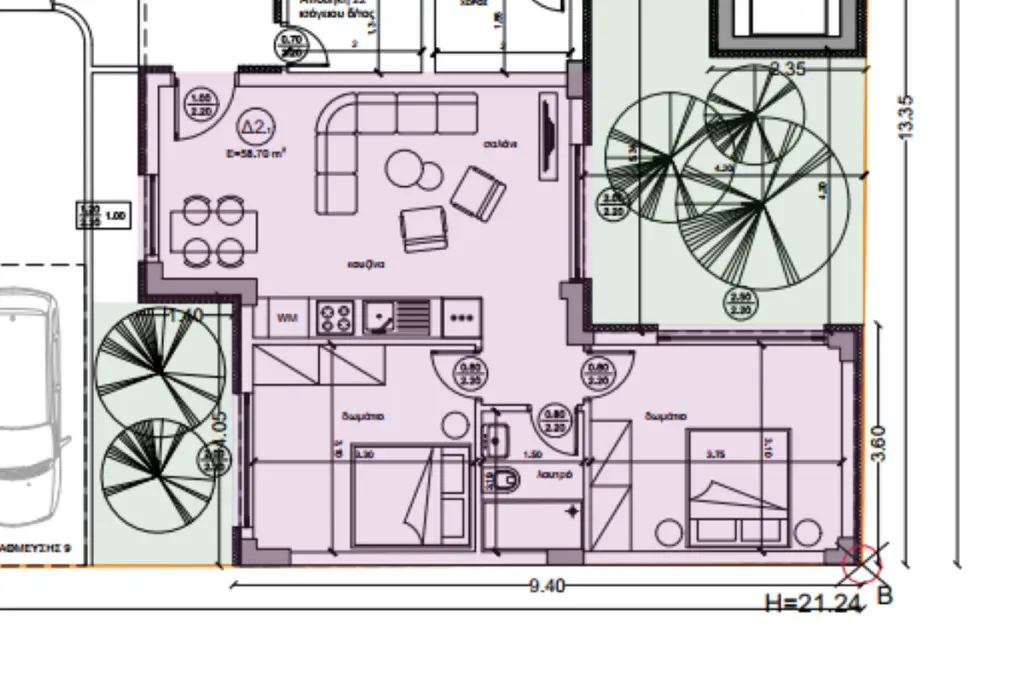 We have an apartment currently under construction in the beautiful region of Chalkidiki. This property is 79 square meters and is located on the ground floor. It’s designed with two bedrooms, a living room that includes a kitchen area, and one bathroom with a shower and toilet.