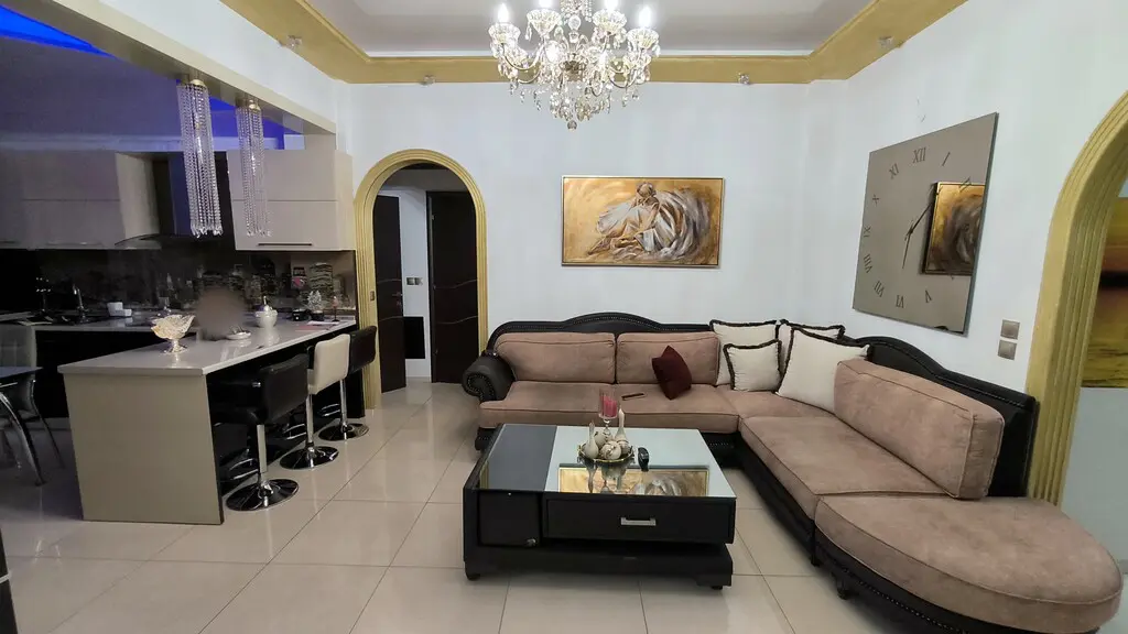 For sale apartment of 90 sq.meters on the Olympic Coast. The apartment is situated on the 1st floor. It consists of 3 bedrooms, living room with kitchen, one shower WC, one storeroom, one office.