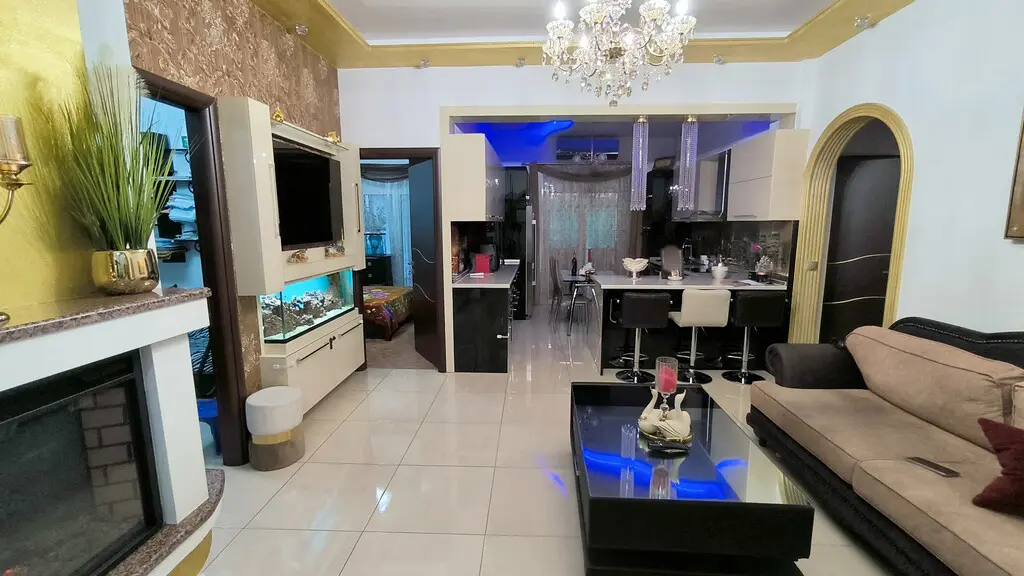 Flat has interior layout. A view of the city opens up from the windows. There are: solar panels for water heating, a fireplace, air conditioning, awnings, heating, a barbecue area. The owners will be leaving the furniture with the sale. Building has an elevator.
