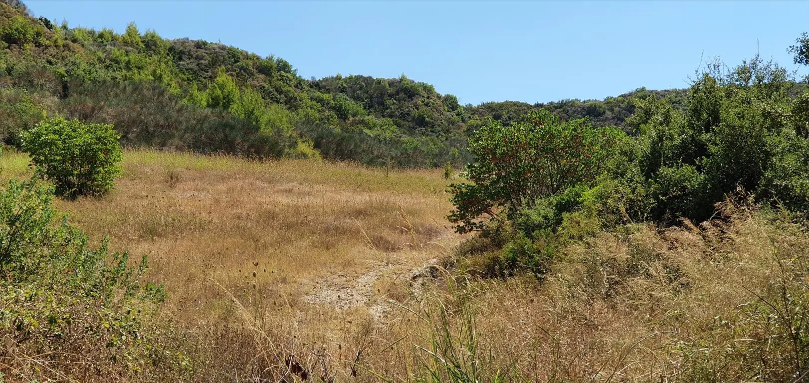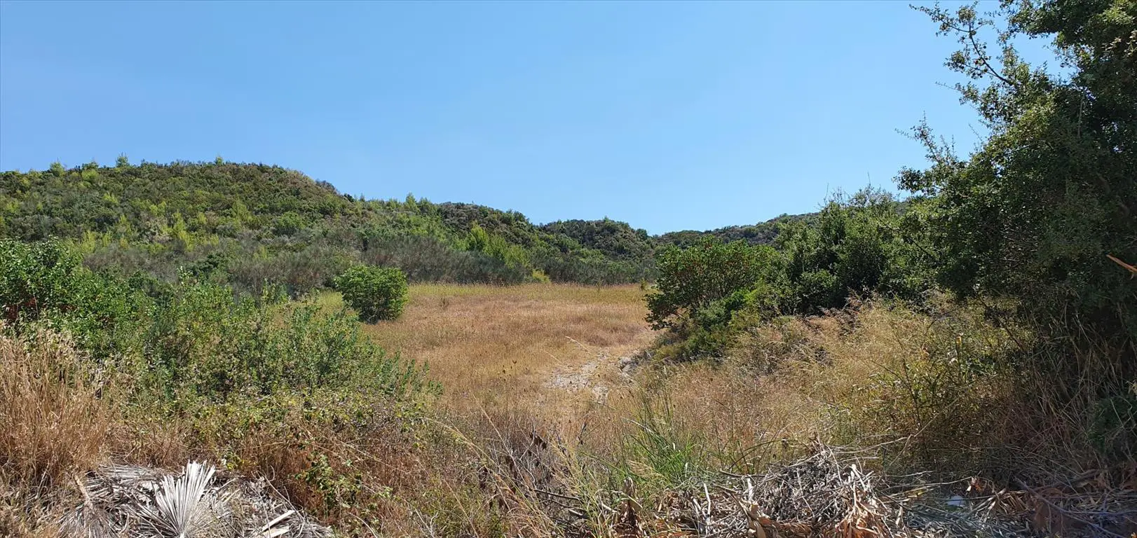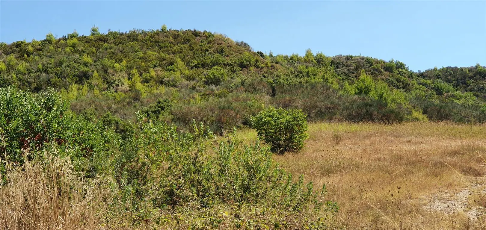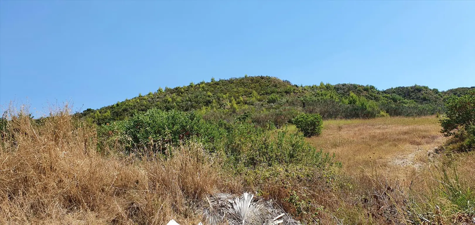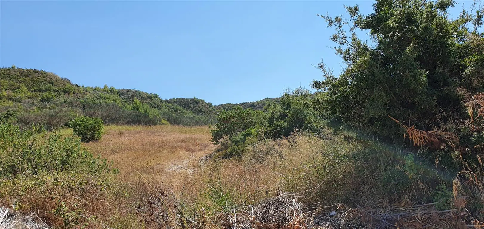 A piece of land is available for purchase in the Kassandra region of Chalkidiki. The property spans 10,250 square meters and offers a view of the surrounding mountains.